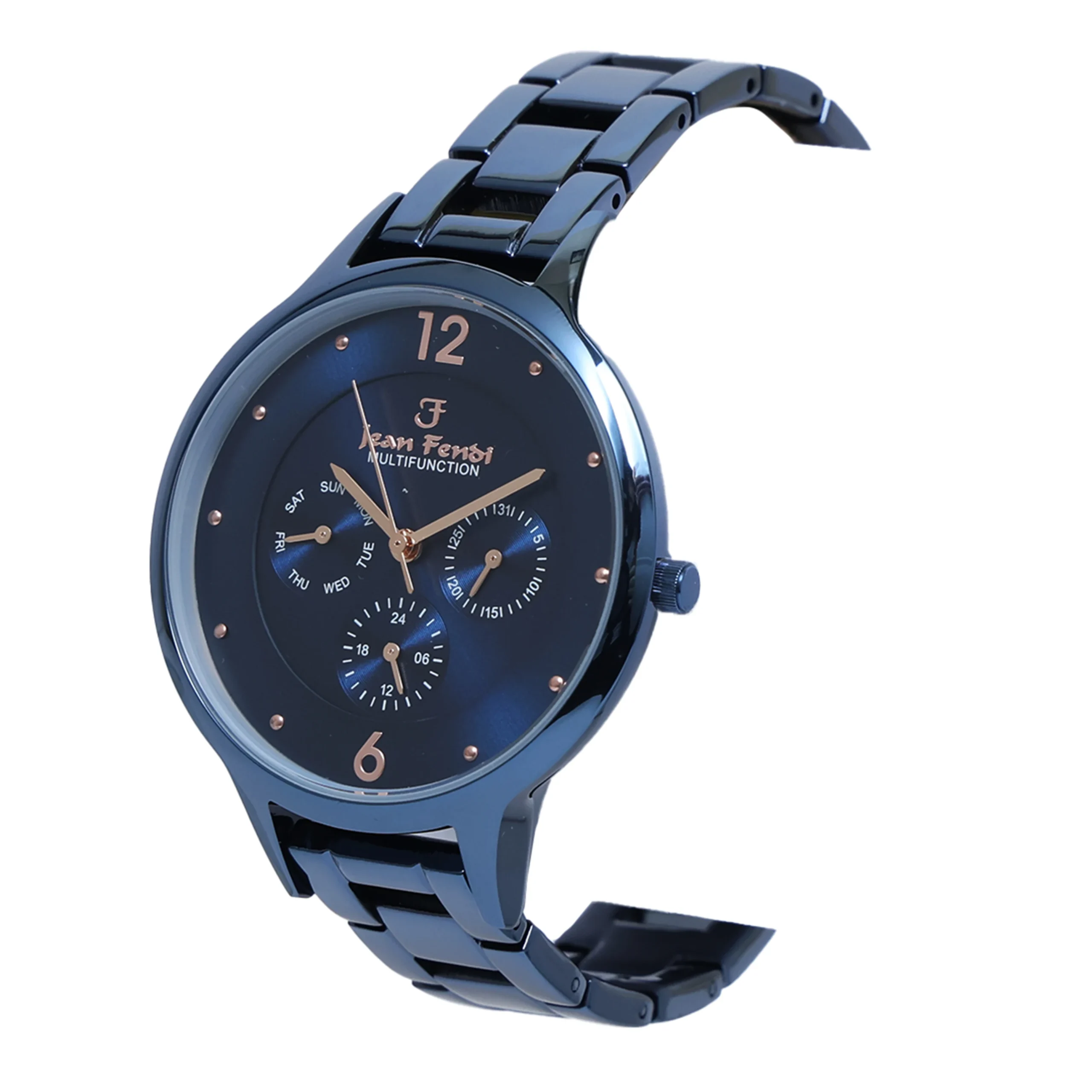 The Jean Fendi Blue Dial Full-Blue Multifunction Men’s Watch is designed for men who appreciate bold elegance. Featuring a striking deep blue dial and matching full-blue stainless steel bracelet, this timepiece makes a statement wherever you go. The multifunction subdials display day, date, and 24-hour time, keeping you stylishly punctual.
