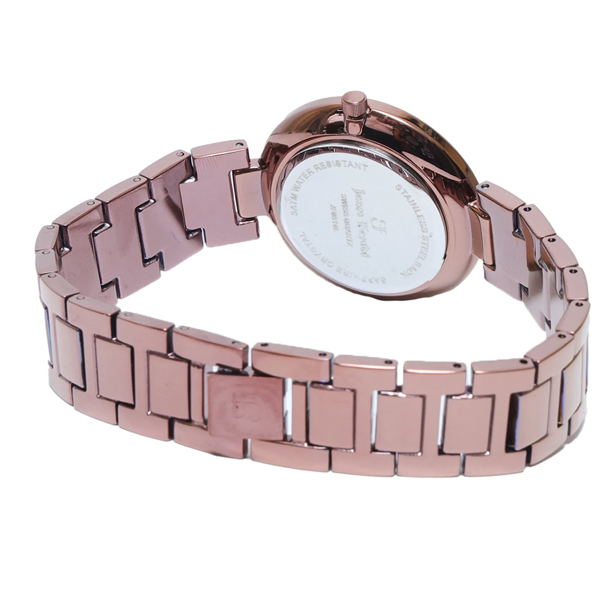 Material: Premium stainless steel Finish: Polished rose-gold brown plating Diameter: Approx. 34mm (ladies’ size) Water Resistance: 3 ATM