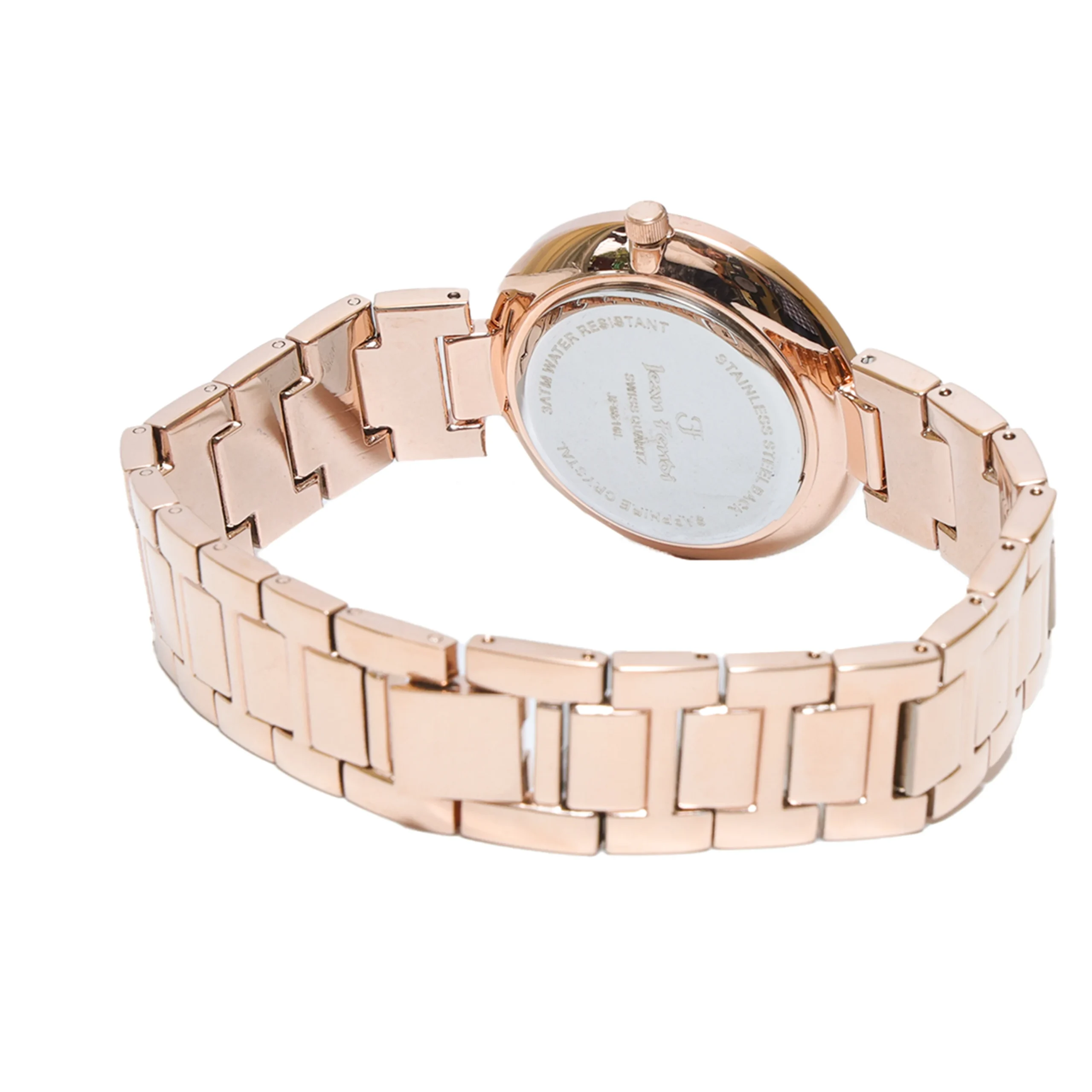 Material: Stainless steel with rose-gold plating Diameter: Approx. 34mm Bezel: Smooth rose-gold polished bezel Water Resistance: 3 ATM