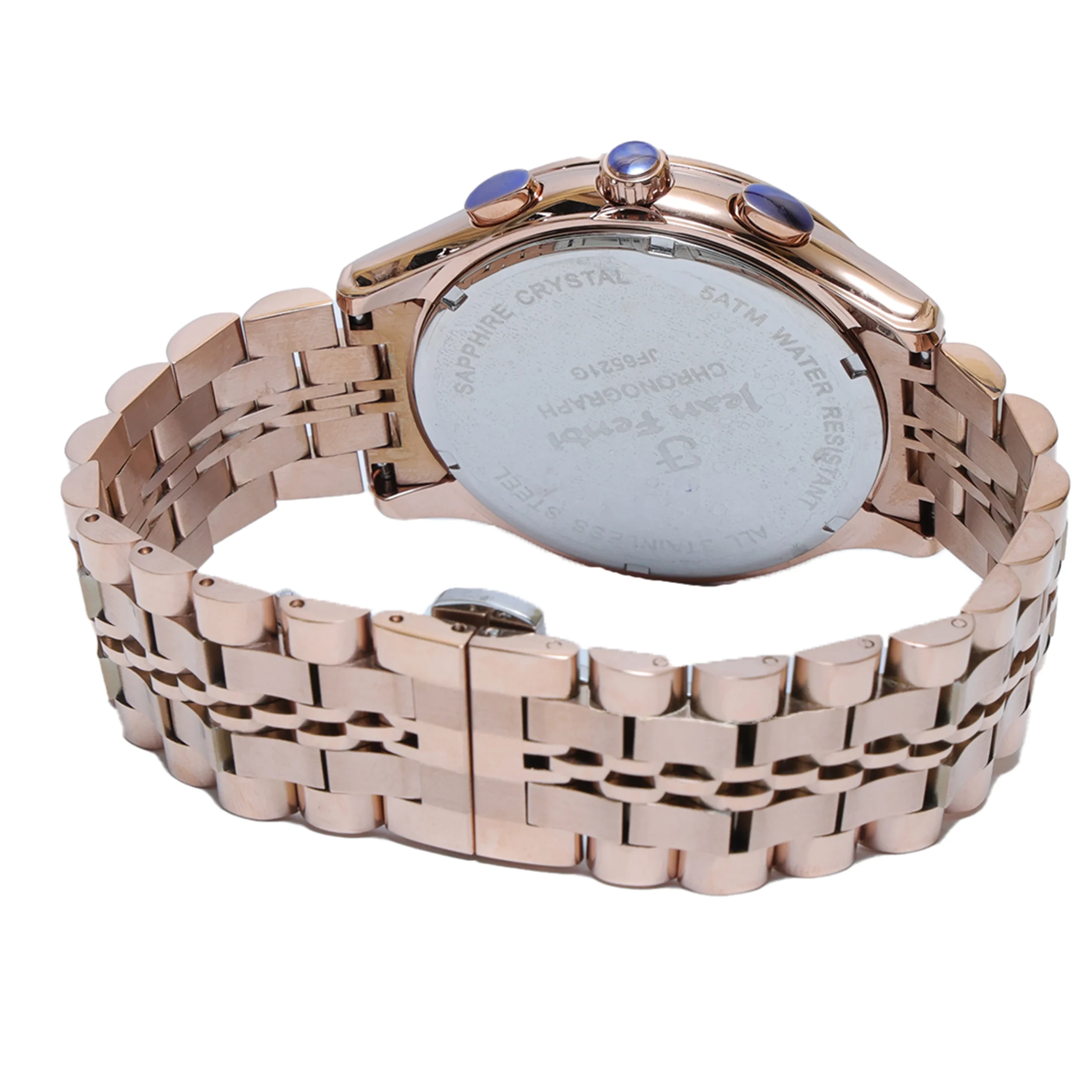 The Jean Fendi Green Dial Rose-Gold Chronograph Men’s Watch is a bold statement of luxury and individuality. Featuring a deep green sunray dial with multifunction chronograph sub-dials, encased in a rose-gold stainless steel body, this timepiece reflects elegance with a modern twist. Designed for men who appreciate unique style, this watch is ideal for formal wear, parties, or making an impression at business events.