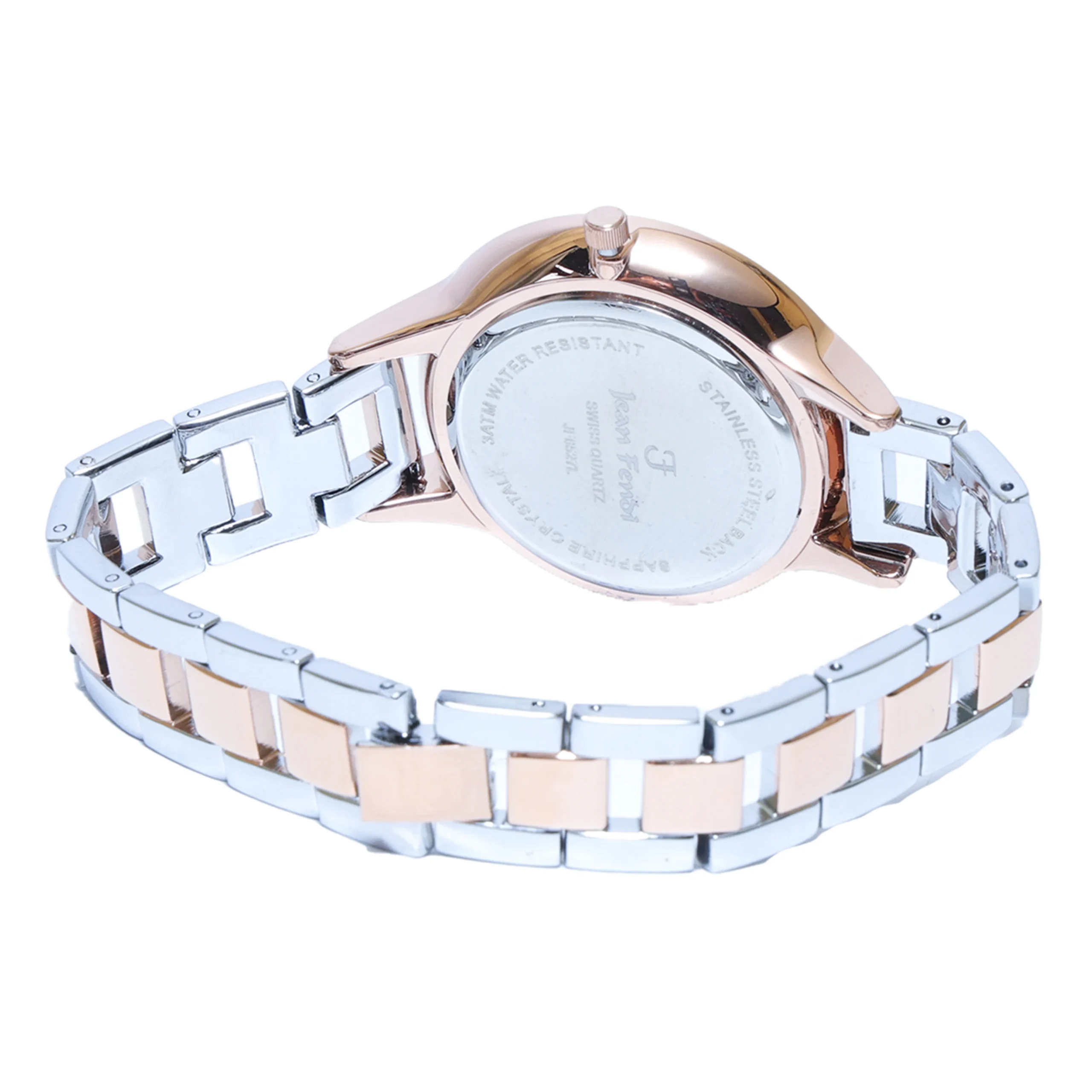 Material: Premium stainless steel Finish: Rose-gold plated case with polished accents Diameter: Approx. 36mm (ideal feminine size) Water Resistance: 3 ATM